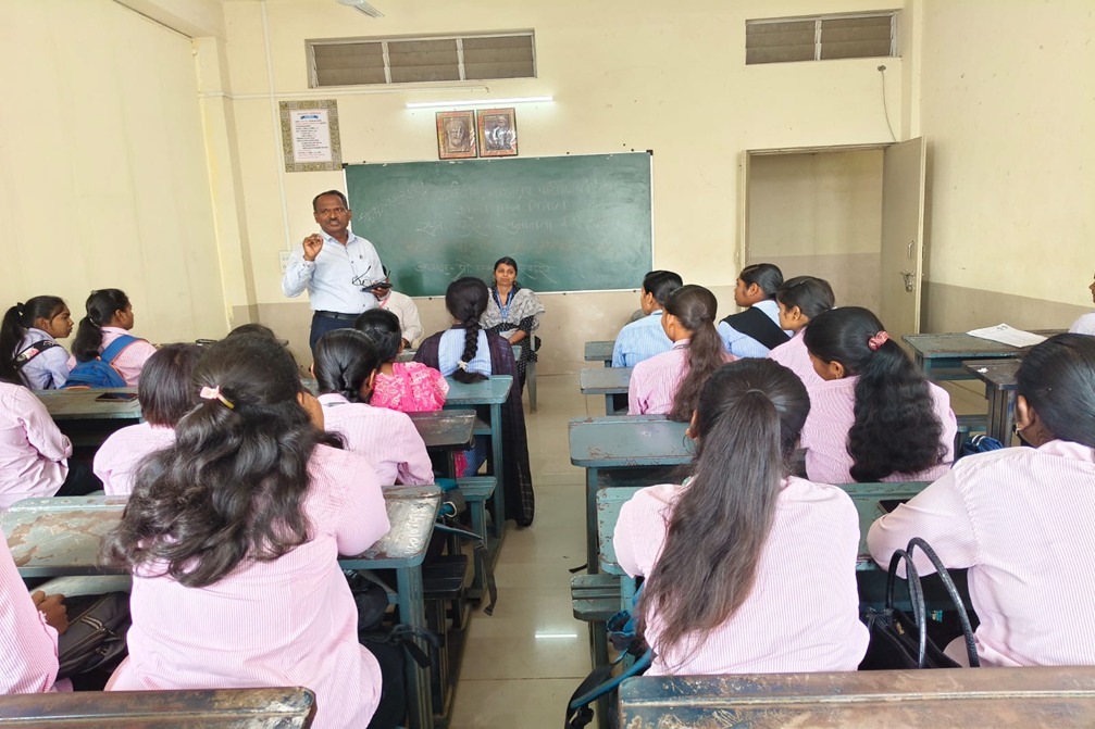 वैज्ञानिक दृष्टिकोण या विषयावर मार्गदर्शन करताना प्रा. डॉ. राजेश दांडगे, समोर उपस्थित विद्यार्थी
