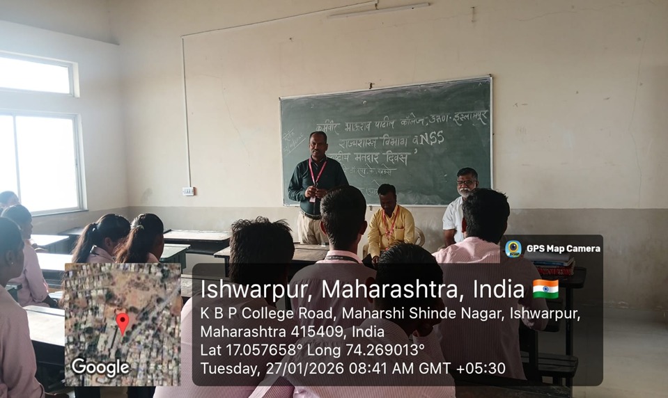 | कर्मवीर जयंतीनिमित्त विद्यार्थ्यांना मार्गदर्शन करताना श्री.शशिकांत बामणे |