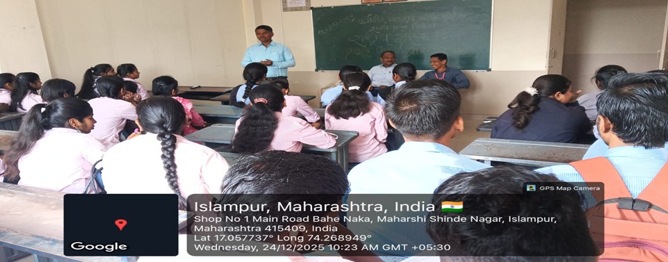 ‘सामाजिक शास्त्र विषयातील रोजगाराच्या संधी ’या विषयावर मार्गदर्शन करताना प्रा. संतोष नांगरे व उपस्थित विद्यार्थी